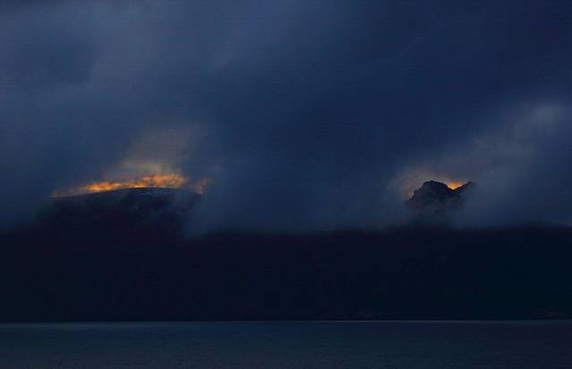 天气变化太快了!刚刚的蓝天白云,转眼就被大片云压顶了!非常幸庆一早先是拍照后吃饭,否则真会悔青肠子。远处还是阳光明媚,可是太远了,冲锋舟是过不去!决定在此地登陆,这次是我们先巡游。