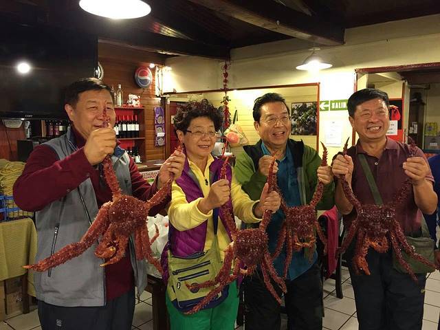 帝王蟹,总共有6只,全部拿下!老板一兴奋,送了几瓶白葡萄酒。估计还是沾汪董和李老师的光!