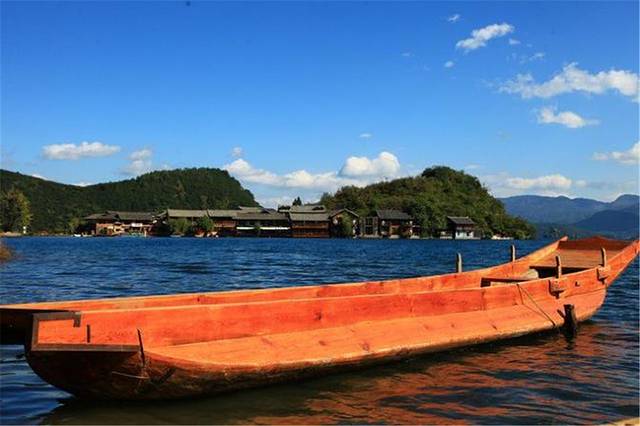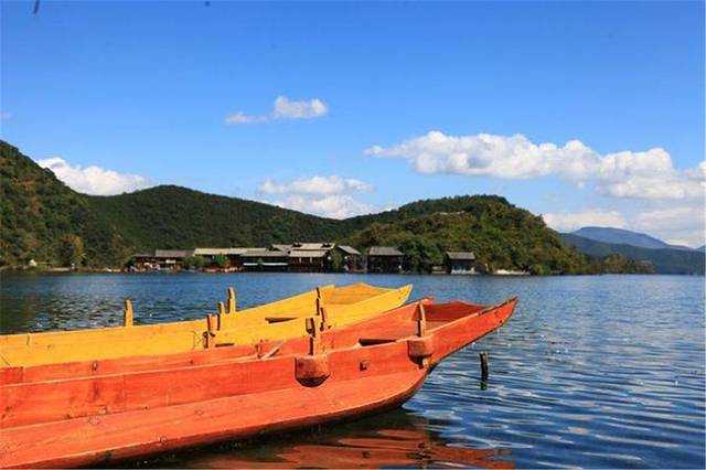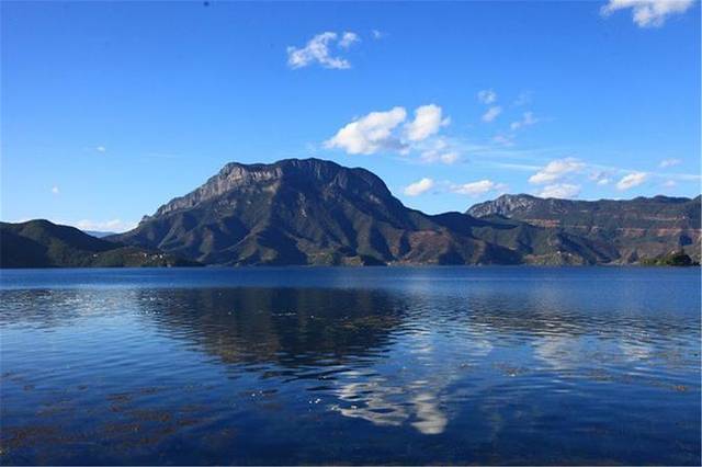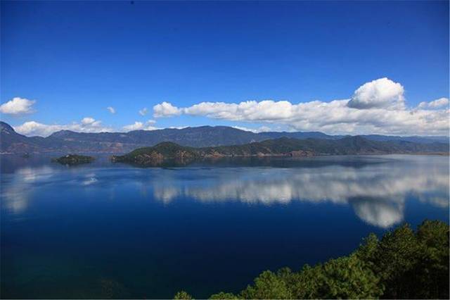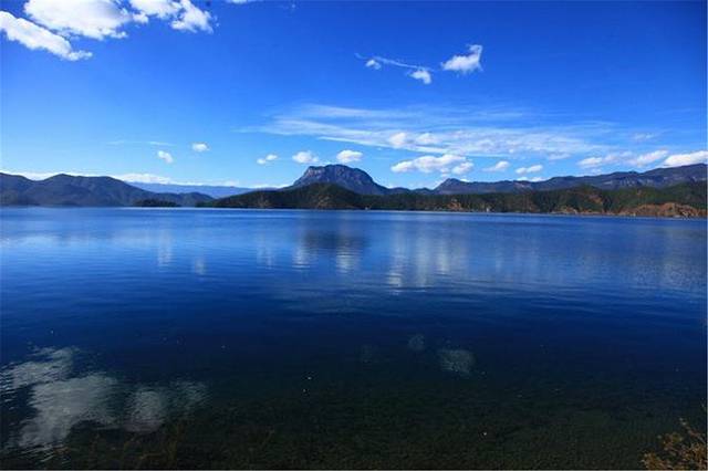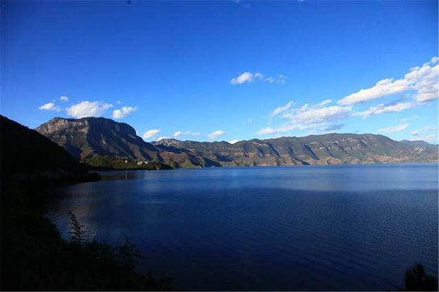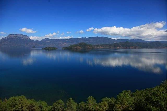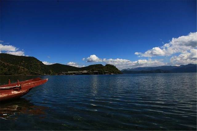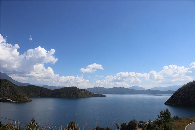 我们的车子不断地在爬山、绕弯、下坡,我们都被颠得七荤八素,快要到泸沽湖景区的时候会有人上车让大家买门票,100一人,一张门票,一本女儿国护照。当我们还在询问泸沽湖还有多远时,往窗外一撇,那一抹深蓝就这么出现了,一切的疲惫和艰辛都烟消云散,我们不远千里、跋山涉水,就是为了来看这一抹蓝。