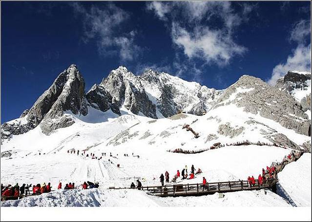但凡你来了丽江,都会选择去一趟神奇的玉龙雪山,山下可以草木绿绿,山上就是零温度的天气,整个玉龙雪山集亚热带、温带及寒带的各种自然景观于一身,构成独特的“阳春白雪”主体景观。雨雪新晴之后,雪格外的白,松格外的绿,掩映生态,移步换形,很像是白雪和绿松在捉迷藏,蔚为奇观。神秘的传说和至今尚是无人征服的处女峰而令人心驰神往。