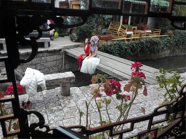 客栈门前拍经常能看到穿着民族服装拍写真的美女