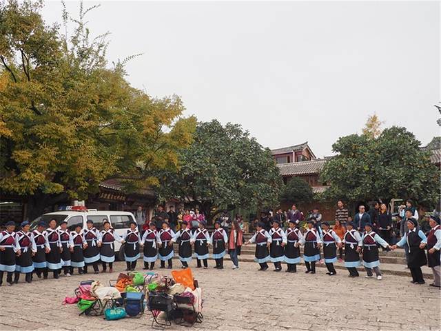 四方街是古城几条主干道汇集的地方,也许是因为中间有个四四方方的广场,所以叫四方街吧,这里经常能看到纳西的老奶奶进行打跳
