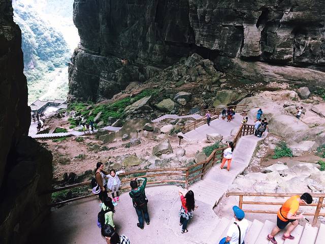 下去的方式就是岩石边大约两米宽的石路,最窄有大约50厘米的,护栏也就1米2左右