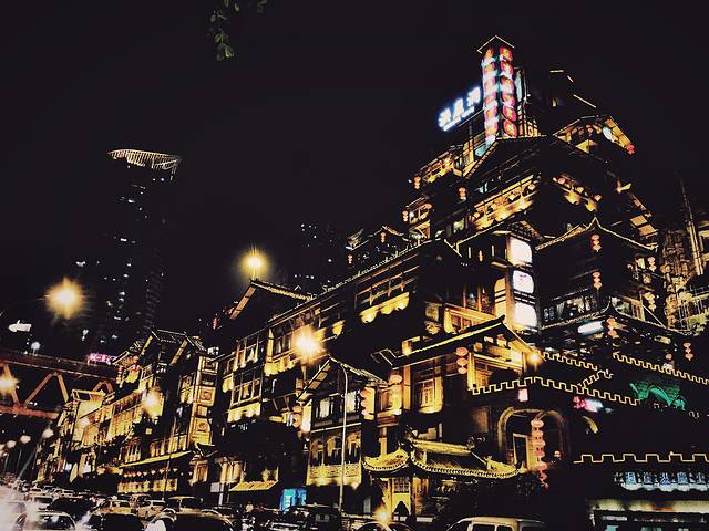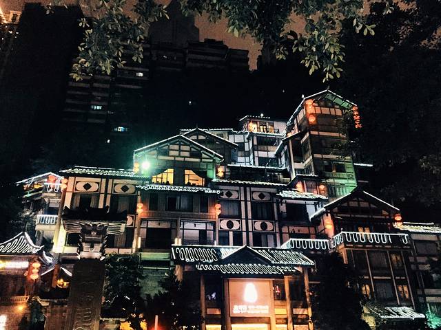 这是洪崖洞旁边的一家酒店,名字忘了,晚上也挺好看的