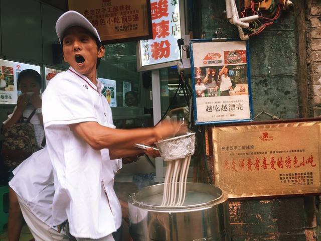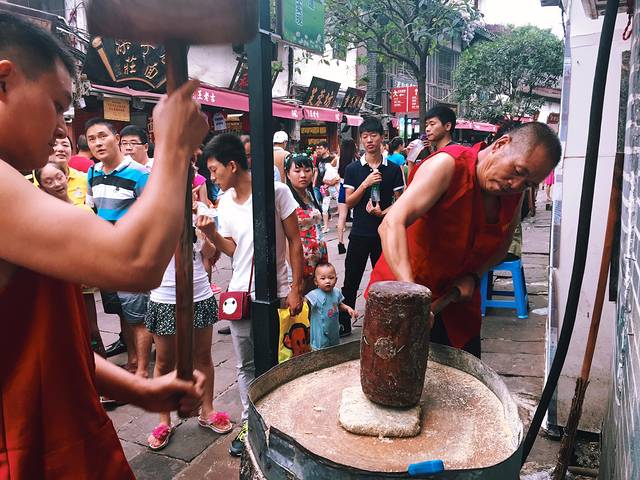 说是古镇其实磁器口还是商业化的步行街,人特别多。磁器口有些像厦门的鼓浪屿和上海的田子坊,但是比这两个地方多了一些接地气的元素,比如吆喝,当街卖艺之类的,所以个人认为即使去过一些类似的地方,也要来这里逛逛,一定会给你一些新的体会和记忆。