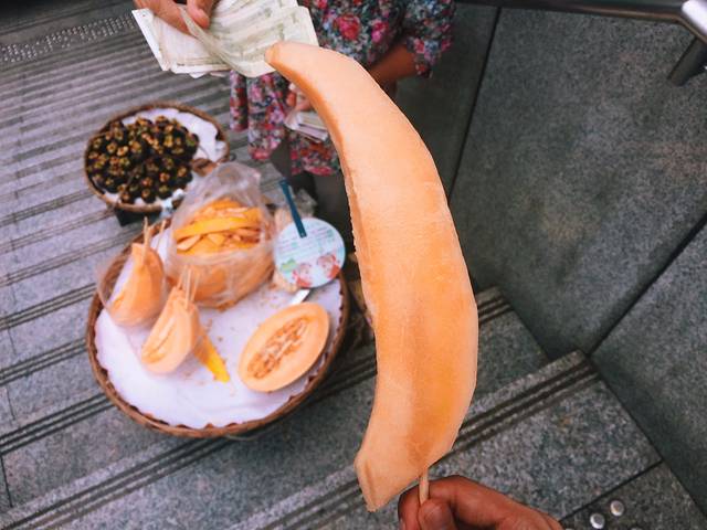 这附近还有很多卖哈密瓜的,3快钱一大串,特别甜。