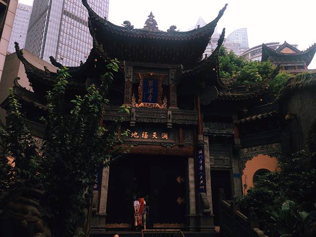 洪崖洞和解放碑距离很近,走路大约十五分钟,走到洪崖洞的时候,其实你在洪崖洞的顶上,你脚下就是整个洪崖洞。