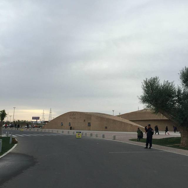 从宾馆出门,右拐就到大路上,走一公里多就到了莫高窟的数字中心。