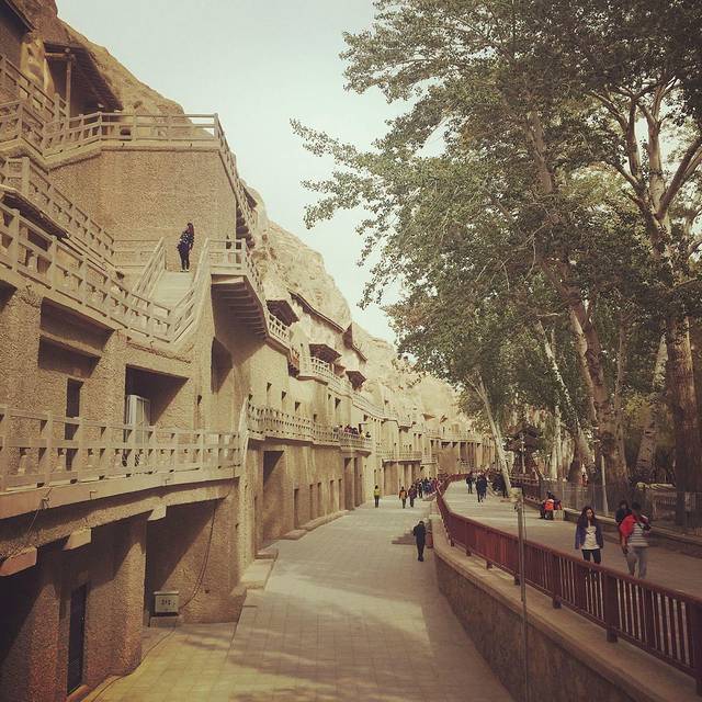 看完莫高窟再看这个简直觉得没啥好看的,而且看到洞窟里面毁坏挺严重也有点伤感。不过这里风景异常地不错。秋天的落叶,金色的世界,那些韵致到了。