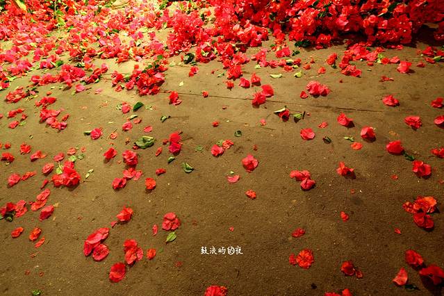 漆黑的夜里,扔掩藏不住围墙上热烈盛开的花儿。路遇两个人在修剪,许是这树的枝桠太茂密了,只是看着这一地的三角梅呀,那么灿烂地躺在地上,我突然有了一种心疼的感觉。