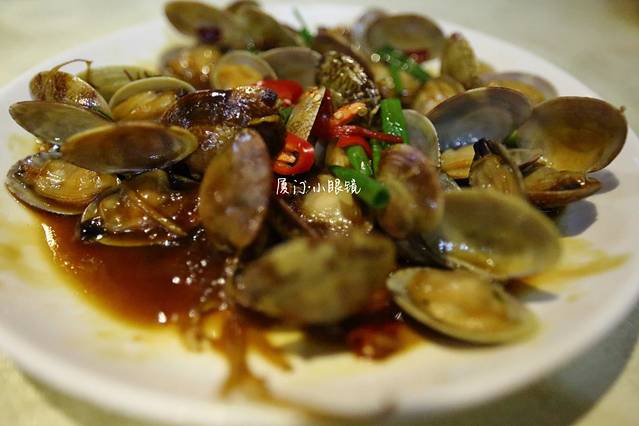 晚饭,留在了小眼镜。晚上8点,还有20多桌在等待。想吃的青蟹、海瓜子、虾姑都没了,一到三楼人满为患。来了厦门,我爱上了竹蛏。