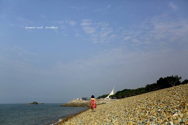 清晨的海边微风徐徐,骑着单车绕着环岛前行。白墙红瓦,椰树成排,海天一色。 路遇一处鹅卵石,小跑着奔向前方。对于海,女人和小孩永远痴迷。