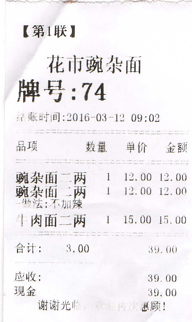 这是一间门脸不大的小铺,点完餐走进去,发现里面还是别有洞天的,从每桌都坐满人来看,我们的选择至少应该不是错的。按照墙上的菜单,我们点了豌杂面、牛肉面,在等待的过程中,发现很多当地人在点餐的时候并不看墙上的菜单,而他们几户点的都是‘小面’。直到这一刻我才反应过来,这眼看就要离开重庆了,居然还没有吃上一碗正宗的‘重庆小面’,在询问服务员得到不能换的答复之后,觉得懊恼不已。不过还好,这两种面味道也是不错的,或许是这几天吃辣的比较凶,攻略上提到的一大早就吃辣的有些难以接受,在我看来似乎都不是事儿。