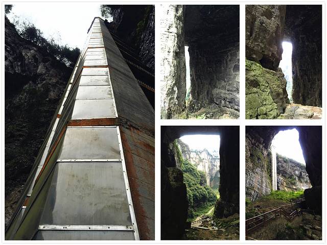 从天坑上面到下面,有一座长长的电梯,下来走过一些台阶,第一座‘桥洞’逐渐显现出来。