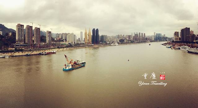这天住宾馆略微有些不顺利,因为前一天的客人不肯腾房,我们预定的那个房间就不能用了,老板最终给我们了两个小一些的房间,因为之前感觉老板人还不错,所以也没有过分的和他计较,选完房之后,放下行李,我们就赶往了朝天门码头。