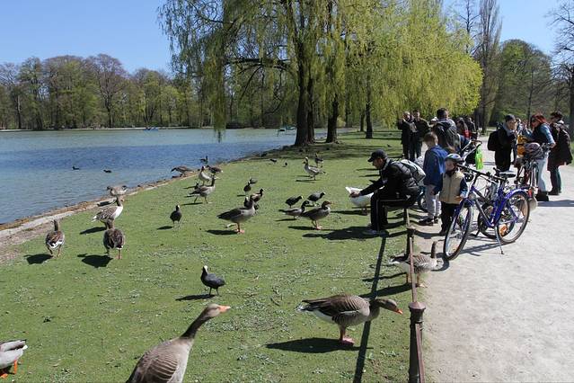 最后一天适逢周日,好像整个慕尼黑的人都集中到了英国花园,晒太阳、遛狗、骑车、喂鸭子。。。英国花园真的巨大,纵跨好几个地铁站,据说所有步道总长78公里。。。