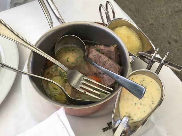 也是网友推荐餐厅Plachuttas,比FiglMuller好吃,人也少一点,煮牛肉非常赞,不过也贵,两人约47€(含小费)。