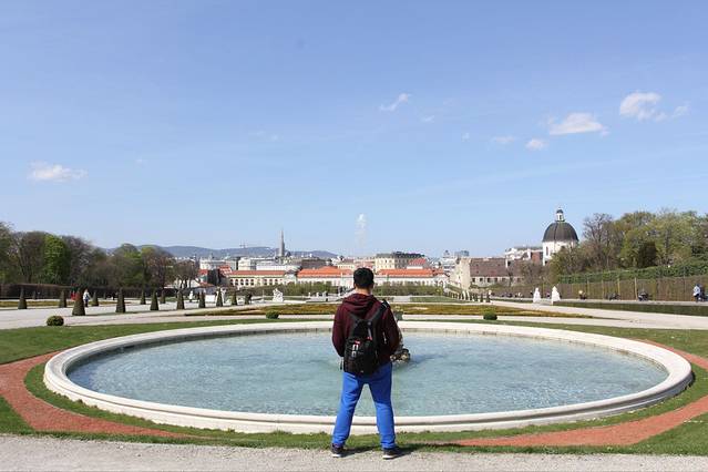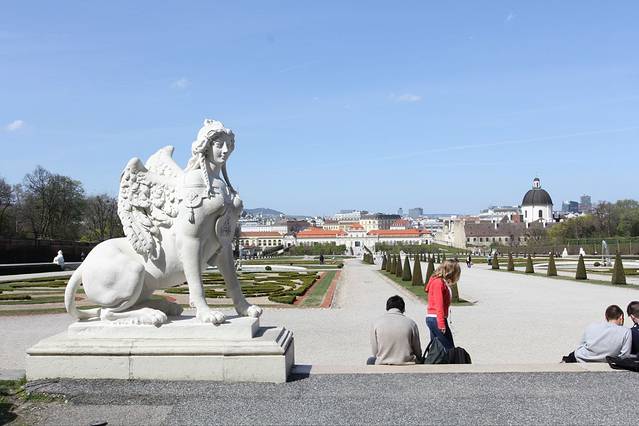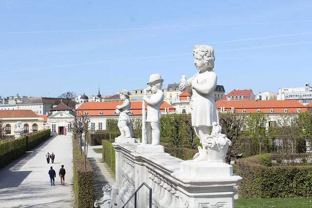 美景宫(德语:Schloss Belvedere)曾是哈布斯堡家族统治下的神圣罗马帝国将领萨伏依的欧根亲王的宫殿。在欧根亲王去世后,美景宫于1752年被卖给玛丽-泰蕾莎。现在的美景宫是奥地利美景宫美术馆的所在地。分上、下美景宫,中间隔了个大花园,我们对美术不是很感兴趣所以没有进去。花园逛逛也不错,很多当地人去晒太阳跑步。