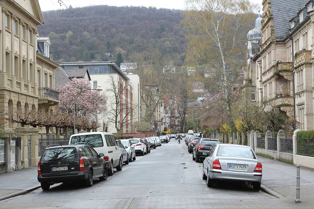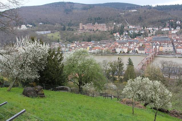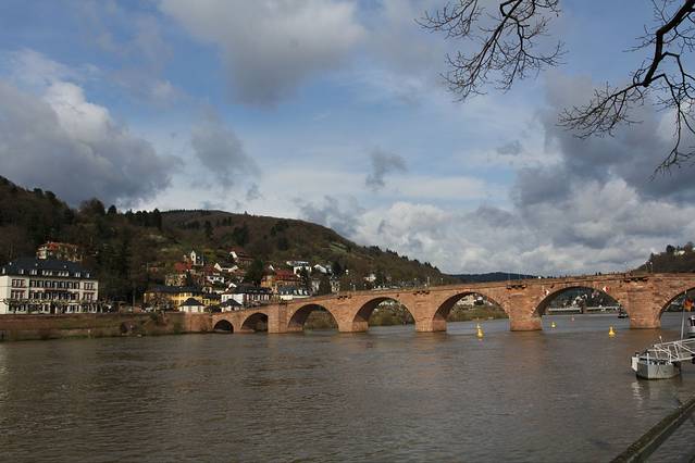 好喜欢这种石拱桥啊,可惜中国的几乎都绝迹了。。。 海德堡市区就方圆几公里,从我们住的街区到老桥估计也就半小时的步行距离,不过一路景色都很美,演着内卡河欣赏海德堡的建筑和街边樱花。