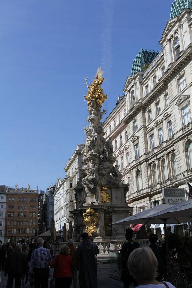 1679年的维也纳黑死病肆虐,鼠疫几乎夺走了三分之二维也纳人的生命。为了纪念受难者,奥地利皇帝利奥波特一世下令建造了黑死病纪念柱,纪念柱的外型台座上描绘着神创天地、黑死病流行、最后的晚餐等浮雕。柱身表现了皇帝摘下皇冠,半跪在地上祈求上帝保佑自己的臣民以及在天使的指引下,圣人打倒化身女巫的黑死病。