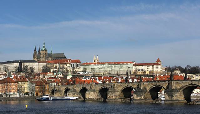 查理大桥(Charles Bridge)建于1357年,是一座14世纪最具艺术价值的石桥,横跨在伏尔塔瓦河上,桥长520米,宽10米,有16座桥墩,大桥两端是布拉格城堡和旧城区。 桥上有30尊圣者雕像,都是出自捷克17~18世纪巴洛克艺术大师的杰作,被欧洲人称为“欧洲的露天巴洛克塑像美术馆”。