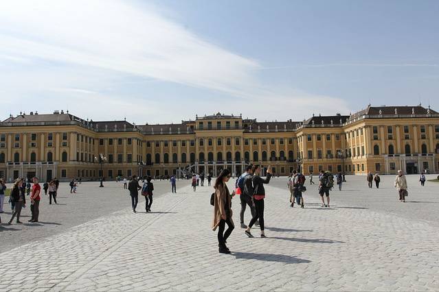 奥地利哈布斯堡正室的避暑皇宫,又称“美泉宫”。美泉宫得名于一眼泉水,这里原是一片开阔的绿地。有一次,马蒂亚斯皇帝狩猎至此,饮一泉水,心神清爽,称此泉为“美丽泉”。1743年,玛丽姬·特蕾西亚女王下令在此建宫,这里便出现了气势磅礴的宫殿和巴洛克式花园。面积2.6万平方米,仅次于法国凡尔赛宫。