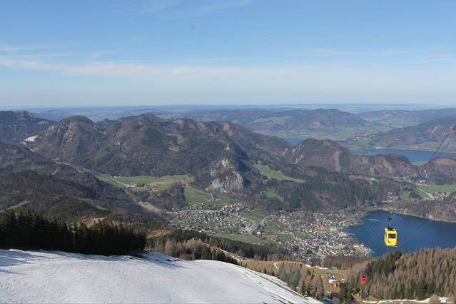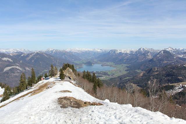 小镇上有缆车可以坐索道上山,山上海拔1700多米,这个季节去还有积雪但是一点不冷,山上有餐厅还有wifi,很多当地人穿着短袖在山上喝着啤酒,非常惬意。 索道票略贵往返22.5€,但很值得。