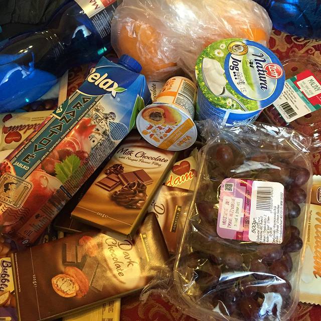 下午实在无聊步行去了镇外的一个Kaufland,离CK小镇大约步行30分钟的距离吧,物价真的便宜到无法想象啊。。。买了好多吃的包含一把剃须刀总共410克朗好像,在布拉格喝了无数苏打水、鲜榨果汁、牛奶,真的又便宜又好喝,还有各种水果都超级甜。