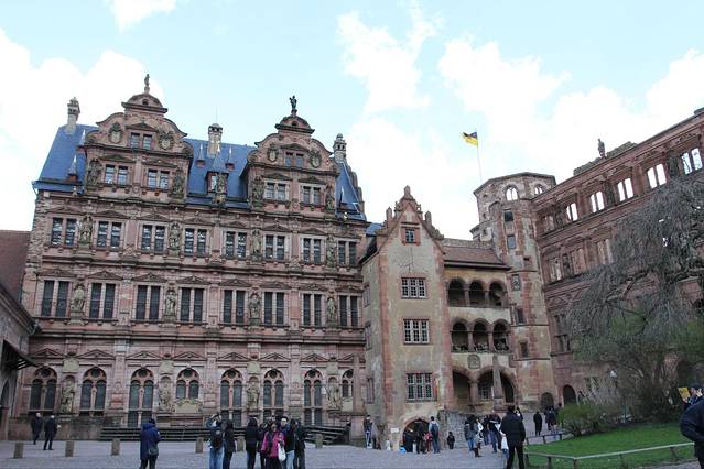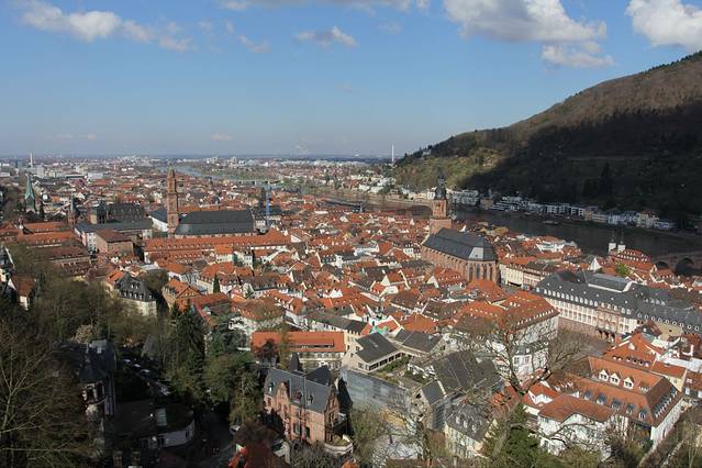 这大概是海德堡唯一一个需要收费进入的景点了,坐落在主街尽头的半山腰上。当年海德堡某个国王送给公主的生日礼物,在山上建造了这样一座庞大的城堡,还有个硕大的后花园~ 坐齿轮小火车上山加上城堡门票一共6€/人。