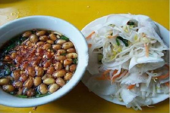 丝娃娃。上过舌尖上的中国,面粉烙成的薄饼,里面卷入各种蔬菜,配上蘸汁,酸酸辣辣,口感很好。