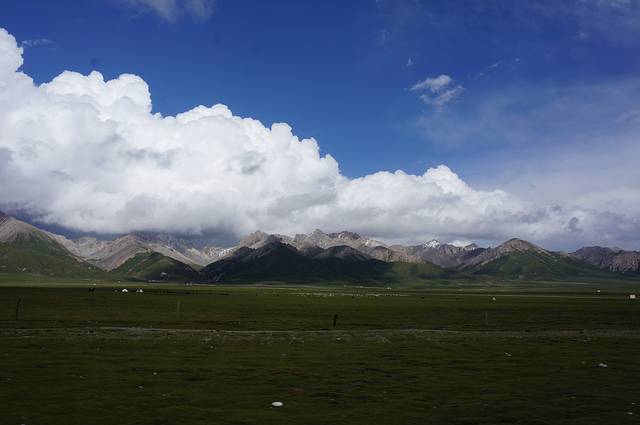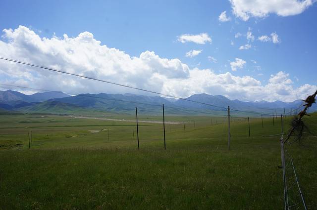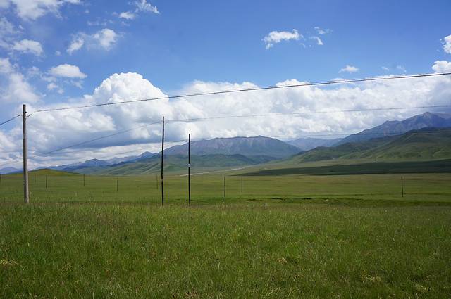 祁连大草原绵延几百里,电线杆和电线也一路跟随,看照片就知道,本人真心觉得藏民们用电的成本可真高啊。