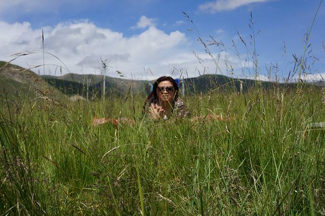 本姑娘今生第一次趴在牛粪上照相