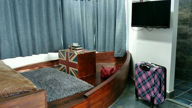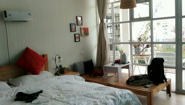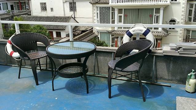 客栈很干净,我们的地中海房间在顶楼,大太阳的时候有点闷,虽然是落地玻璃的观景窗户,但是四周包围的都是住宅,没啥好看的。还有就是离古城中心有点远。