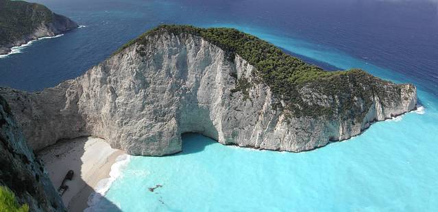 来到扎金索斯,一定要去那瓦吉奥湾,即沉船湾和走私者海湾。沉船湾靠近沃里麦镇(Volimes)一个风景如画的小村庄,它也是整个希腊景色最美(出镜率最高)的海滩。传说1983年一艘非法运输香烟的船在即将上岸时不幸撞上了海湾附近的礁石,而停留在了这里,成为了一个著名的景点。
