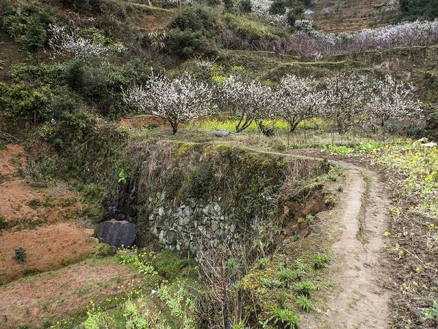 和一个本地的果农大伯聊起天来,他自豪的说起去年住他家的几个南X日报的摄影师拍照拿了九峰花海摄影一等奖,然后看着那边“城中村风”的粗糙的水泥瓷片房子羡慕起来,说那样的房子才是美啊,多好,房费还可以收高一倍,我说:“游客倒是喜欢那些老房子呢,别拆。”大伯有点尴尬了,于是留下联系方式,道个别,我就继续游荡了。想必大家有钱了,新欧式风就会吹遍整个山谷了吧。