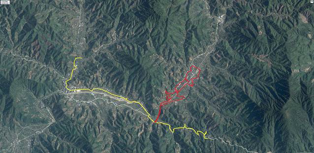 第一天:黄线,徒步约7km,花费了6个小时。第二天:红线,徒步约7km,花费5小时。