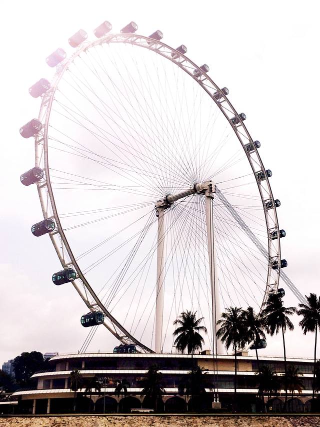 因为鸭子船的换票点在摩天轮下面,所以今天的第一站就来到了新加坡摩天轮。新加坡的摩天轮又名飞行者摩天轮(Singapore Flyer),与英国的伦敦眼类似,可以饱览新加坡市中心美景,还能远眺印度尼西亚的巴淡岛、民丹岛,以及马来西亚的柔佛州等。但是听英国留学的朋友说,由于地理位置的原因,飞行者没有伦敦眼的景观效果好,见者见智吧,有空的就可以去看看。