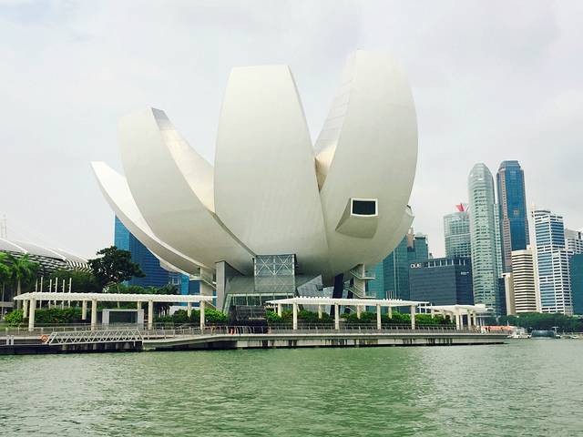 新加坡的滨海艺术中心又称“大榴莲”,在鱼尾狮公园对面,真正的名字叫Esplanade,里面是剧院剧场音乐厅及配套设施,他由两个建筑组成,长的几乎一样,就像个大榴莲切成两半倒扣在河边。