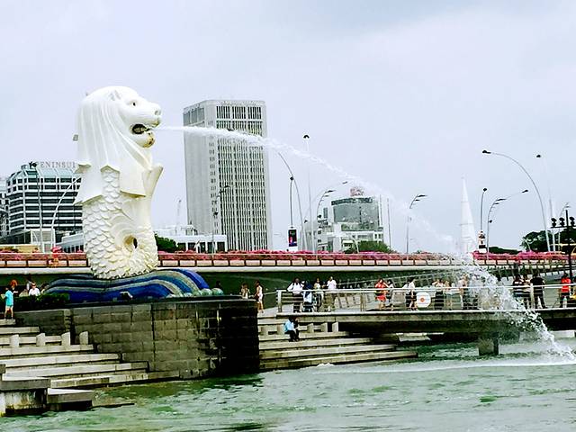 穿过这座桥,你就可以到达地标式建筑:鱼尾狮公园。