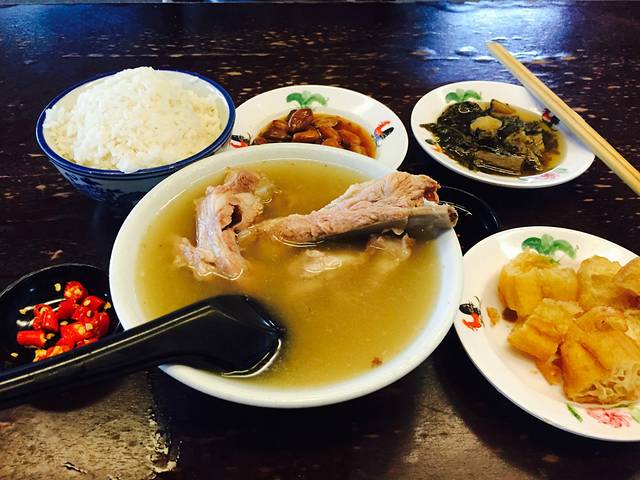 换完鸭子船的票,大概还有一个小时的时间,我们就选择在摩天轮楼下的路边摊解决我们的早中饭,不知道是不是因为到的太早,路边摊里没有几家开门,只能随便找一家肉骨茶吃吃了。