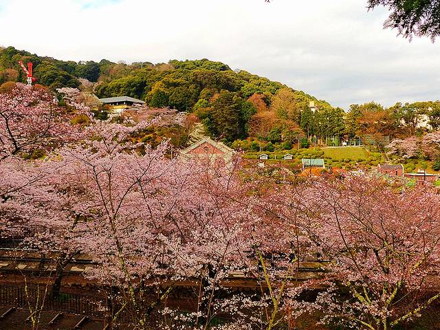 円山公园是京都最有名的赏樱地之一,公园有一棵最大的樱花树,在池塘边的高处显著位置上,很壮观。它是樱花中的珍贵品种“枝垂樱”,迄今已经有200多年的历史了。
