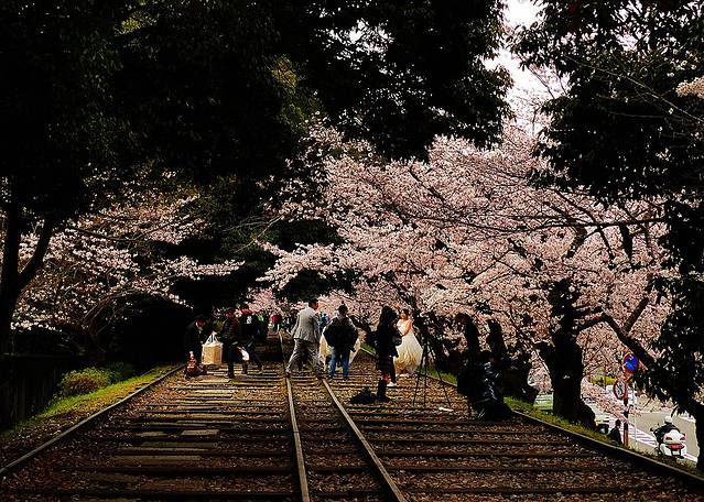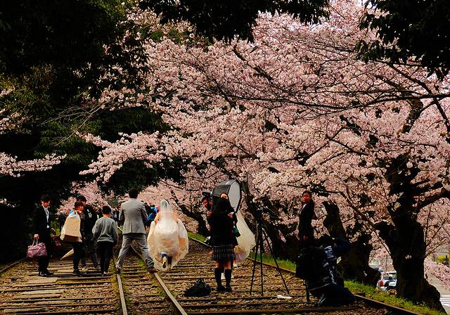 清晨走出酒店,酒店门前就有樱花盛开,过道就是一条废弃的铁道,两边樱花绽放,可惜铁道太宽,樱花没有在空中连接。有很多情侣在拍婚纱照,感觉这里人好多,就直接去京都名刹南禅寺。南禅寺距离酒店很近,穿过隧道,几分钟就到了。都说京都的寺庙很多,这次真的领略到了,只南禅寺就有很多庙宇。南禅寺是京都著名的樱花观赏地,本来古色古香的寺庙,在樱花掩映下更加古朴典雅。高大的三门楼,可以购票登楼,400円/每人,脱鞋上去可以鸟瞰远处京都和寺庙全景。