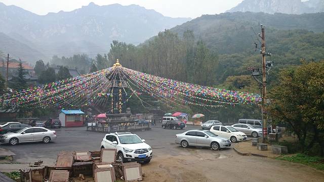 出了嵩阳书院,有很长一段路才能到嵩岳寺塔,我们叫了小黑车。黑车师傅还给我们指了一条往大法王寺的近道(其实一点都不近都是台阶啊叔叔),好不容易走到大法王寺门口,阿姨居然跑来问我收停车费。。。