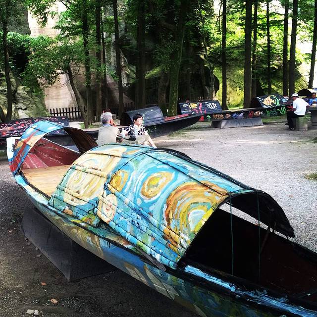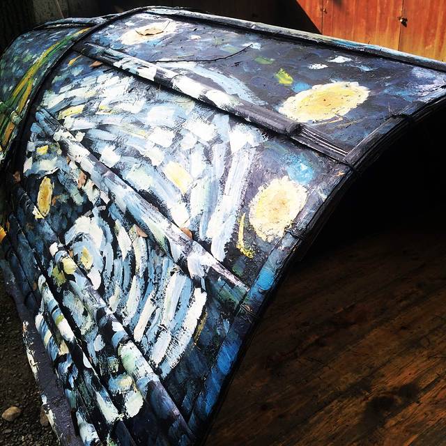 东湖某处惊喜地看到乌篷船作坊,以及这个画着星空的乌篷船。顿时对东湖产生了好感。