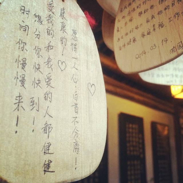 陆游唐琬爱情绝唱的沈园,进门先看到的却是今日男男女女挂上的祈愿牌。