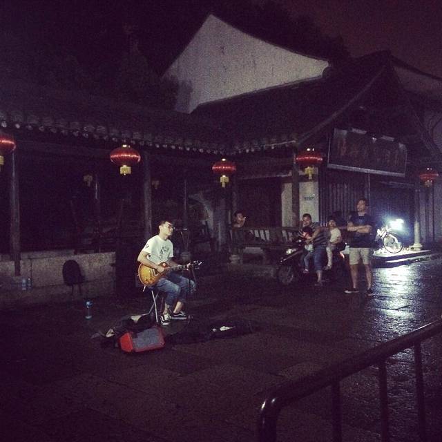 路边唱歌的小哥居然停下来说今天换我朋友来唱,我还专门借了相机给他拍照。然后上来的这个小哥唱得更好虽然他说已经一个多月没有摸琴了也没带拨片,而且词写得很好。希望他们可以坚持的再久一点。