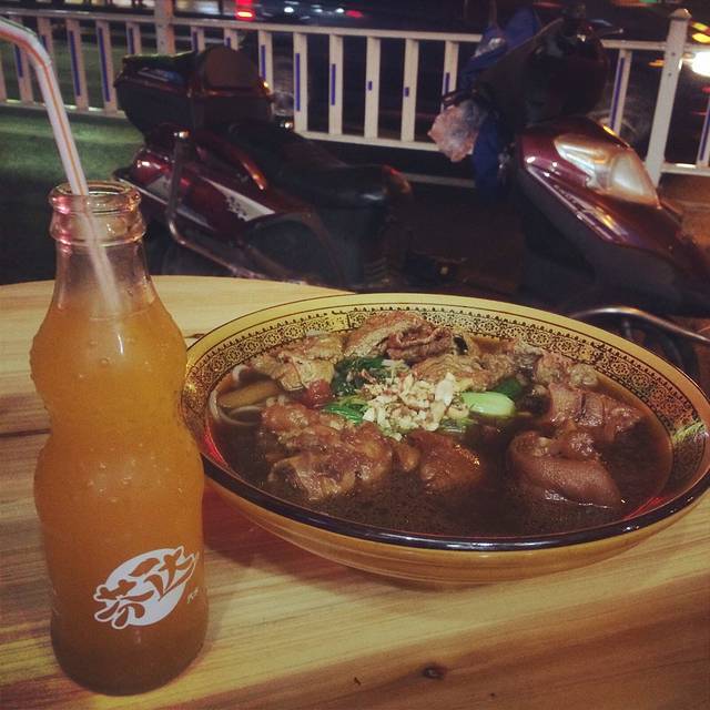 拐进直街前的一家猪脚店,ms是个连锁还上了各种电视。总之味道不错。