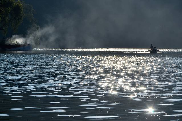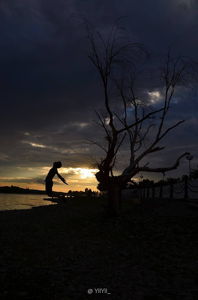太阳下山了,我们疯狂的往岸边划,上岸就天黑了。