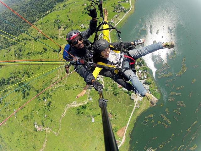 据说尼泊尔的滑翔伞是全球最便宜的,我们在hotel报名的滑翔伞,半个小时,人民币330多,还包照相和录一段视频。