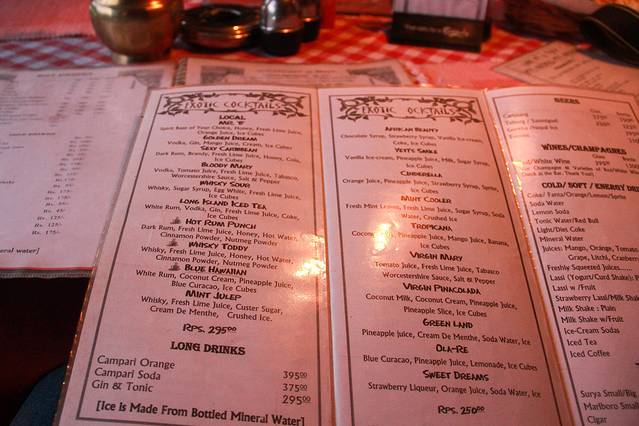 英文的菜单,还是可以看懂一些,但我喜欢点不认识的,汗,吃了很多天终于认识黑胡椒牛排了。